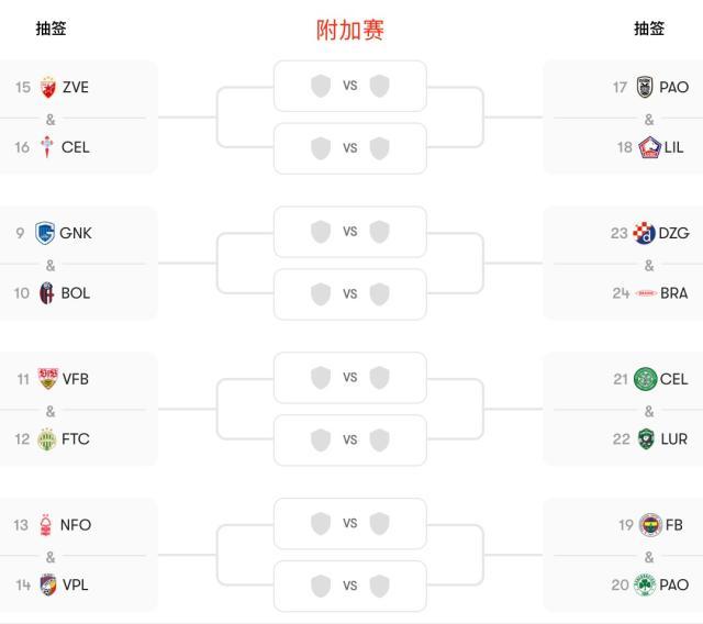 附加赛对阵为: